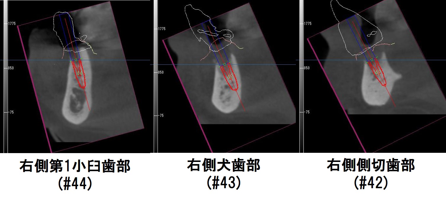 - All on 4(4本で義歯を固定する)や義歯を2本のインプラントで固定するか、ブリッジタイプや単独歯などの形でインプラント治療をするかによっても、埋入位置、選択すべきインプラントなども変わるので、それらの要素を考慮して診断を行う