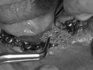 - 粘膜切開を行うか否か、顎提、粘膜負担でのサージカルガイドをいかに安定させ、診断のインプラント埋入位置に正確に埋入するかを考えて手術を行う。場合によっては、ガイドによってインプラント窩を形成後、それに沿ってガイドを外すほうが良好な結果を得られる場合もある