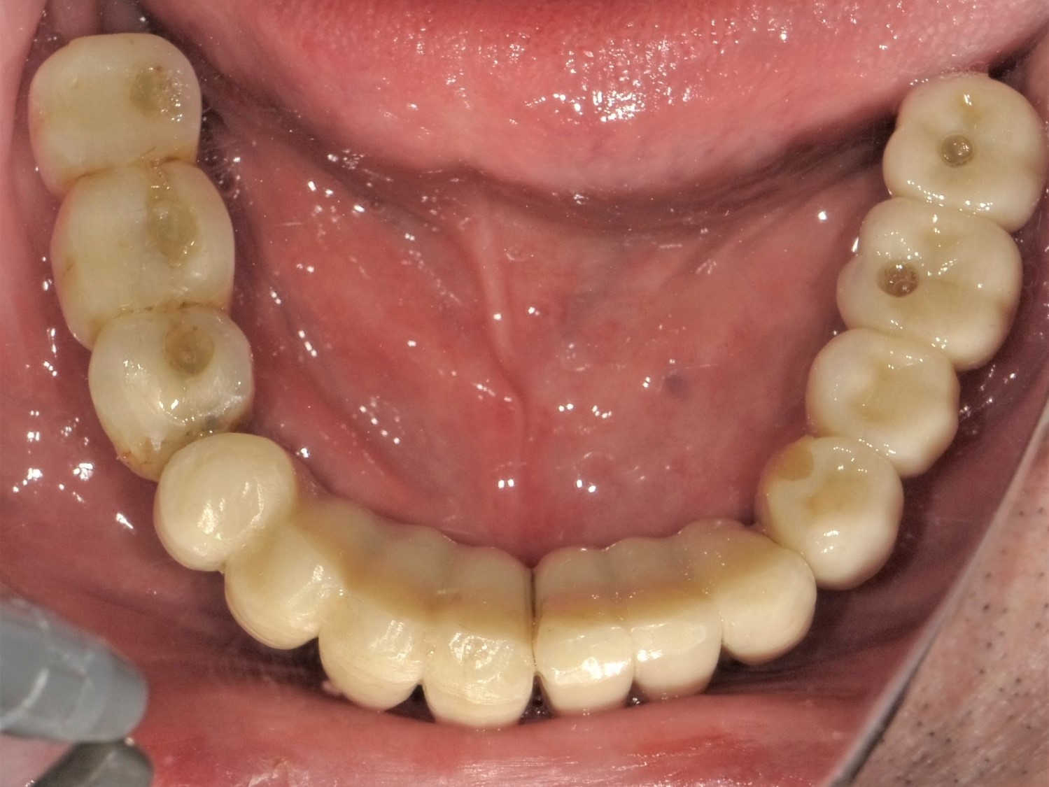 非常に大きな欠損症例であり、かつ地方から飛行機で当クリニックに通っていただきました。上顎も前医で入れたインプラントが脱落するなど問題があり、今後も治療していく予定である。インプラント治療医にとって必要なのは、一生、その方の口にとどまり機能するインプラント治療のために日々、研鑽すべきであり、その自信がなければ安易に行ってはいけないことである。インプラント治療を行った患者さんがその医療施設に来なくなるのは成功してメンテナンスに来ないのではなく、当該医療機関で失敗されたから来ないとこもあることを十分に考えなくてはならない。