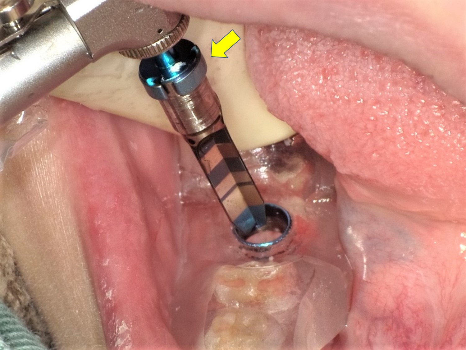 - 頬側の骨レベルを見誤らないように術中インプラント埋入後、インプラント周囲の骨レベルを短針などで十分に確認する