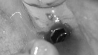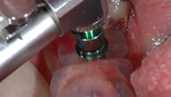インプラント体の上に歯肉の貫通部を治癒させるためのヒーリングアバットメントを装着して終了です。歯肉を切開していないので、縫合の必要もなく、出血もほとんどありません。